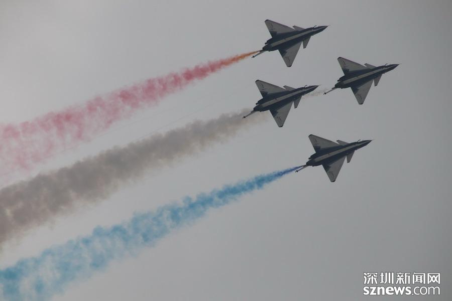 “八一”飛行表演隊的隊員則駕駛殲-10,展示了單機特技表演、六機編隊通場……戰(zhàn)機拉著彩煙,為觀眾帶來精彩的空中芭蕾。