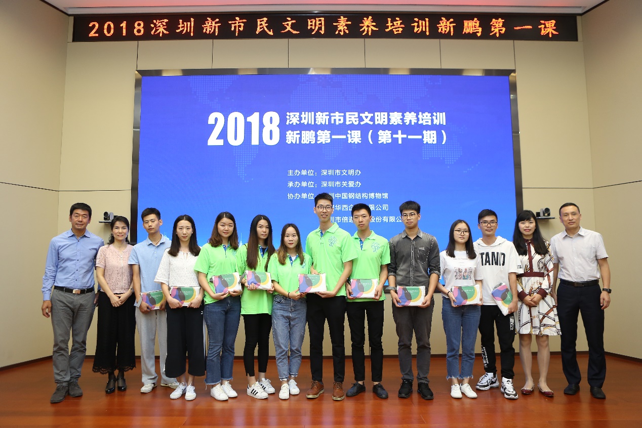培訓(xùn)課上,上臺共同宣讀深圳新市民文明公約的環(huán)節(jié)讓十位新市民神情嚴(yán)肅而莊重,他們承諾將從自身做起,履行深圳市民應(yīng)盡的職責(zé)與義務(wù),赴深圳文明之約,成為文明深圳的踐行者與傳播者。深圳市關(guān)愛辦副主任華榮、中國著名登山探險家張梁、中國華西企業(yè)有限公司黨群工作部部長易佳、深圳中國鋼結(jié)構(gòu)博物館館長張利峰為新市民代表送上一份詳盡的“深圳說明書”——新版深圳福袋暨新版市民生活指南。