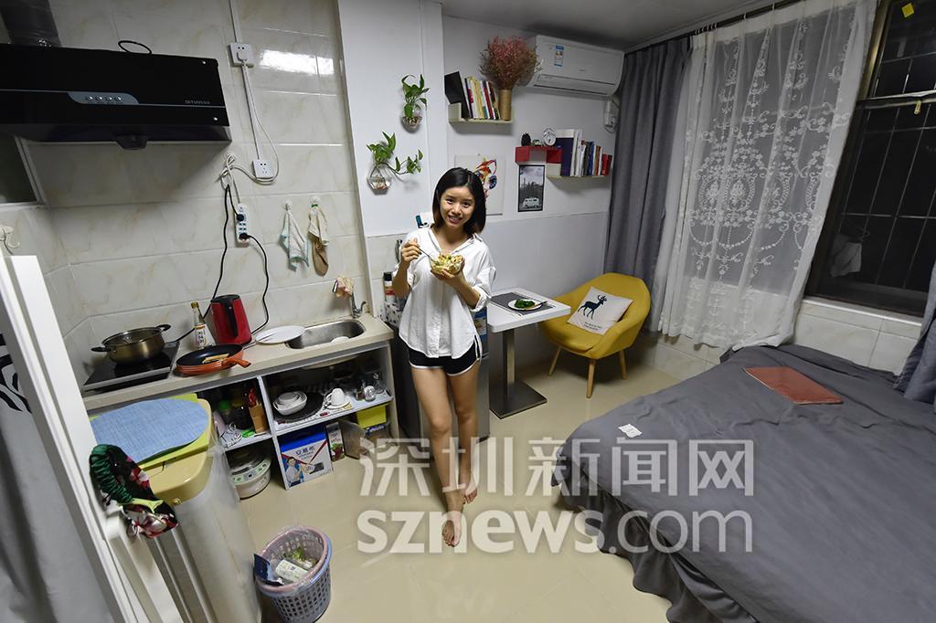 現(xiàn)在的她,租了一個(gè)16平米的一居室。剛搬進(jìn)這個(gè)房子的時(shí)候,整個(gè)房間只有抽油煙機(jī)和空調(diào),現(xiàn)在房間的樣子,都是她自己布置的?!拔矣X得房子可以是租的,但是生活卻還是自己的,房子一定要是自己買的才去好好對(duì)待嗎?我覺得不是。”