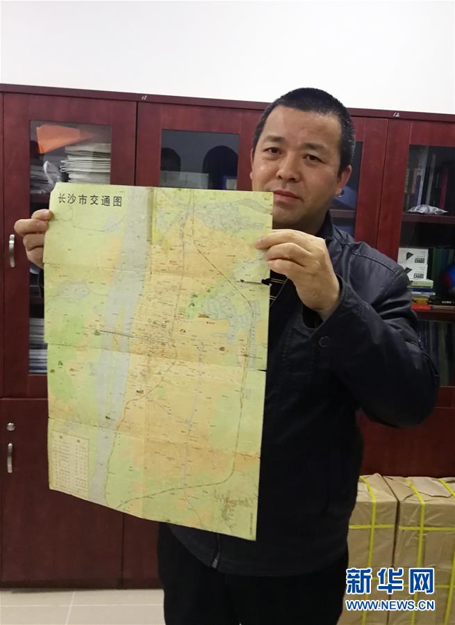 10月23日,蔣連軍向記者展示他收藏的改革開放初期的長沙城區(qū)地圖。 湖南地圖出版社注冊測繪師蔣連軍愛好地圖收藏,累積了40多張40年來多個版本的長沙城區(qū)地圖。10月23日,記者看到了這些地圖,它們直觀呈現(xiàn)了改革開放40年來長沙城的變遷發(fā)展。 新華社記者 段羨菊 攝
