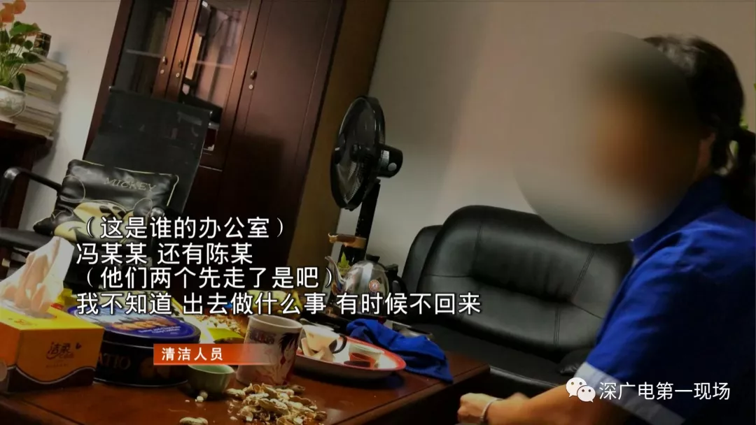 看到該單位工作作風(fēng)如此渙散,暗訪組成員繼續(xù)對(duì)另外一棟高層辦公樓展開暗訪檢查。下午4點(diǎn)03分,暗訪組成員剛進(jìn)入二樓——深圳市生活垃圾處理監(jiān)管中心辦公區(qū)域,就聽到有兩名男性工作人員招呼打掃衛(wèi)生的清潔人員幫忙整理辦公室,而這兩人背著包,徑直離開辦公大樓。