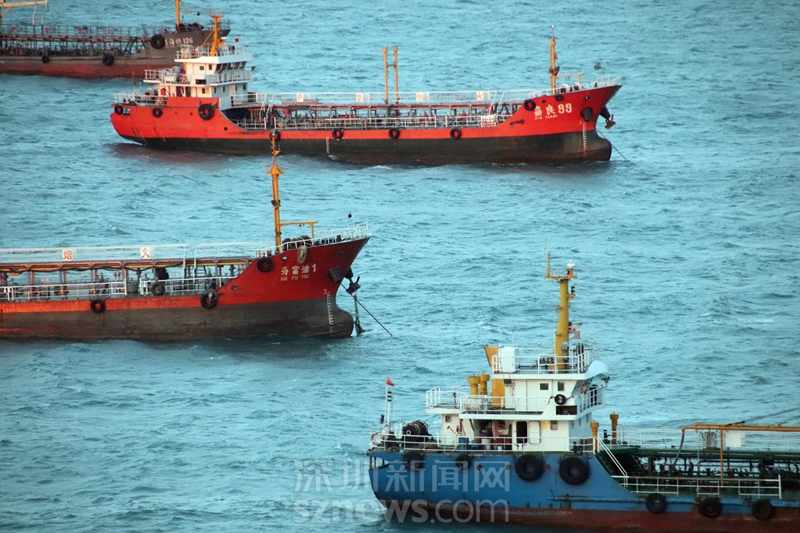從相思嶺酒店房間陽臺(tái)拍到的外伶仃海域上的船(攝于2018年11月22日清晨)