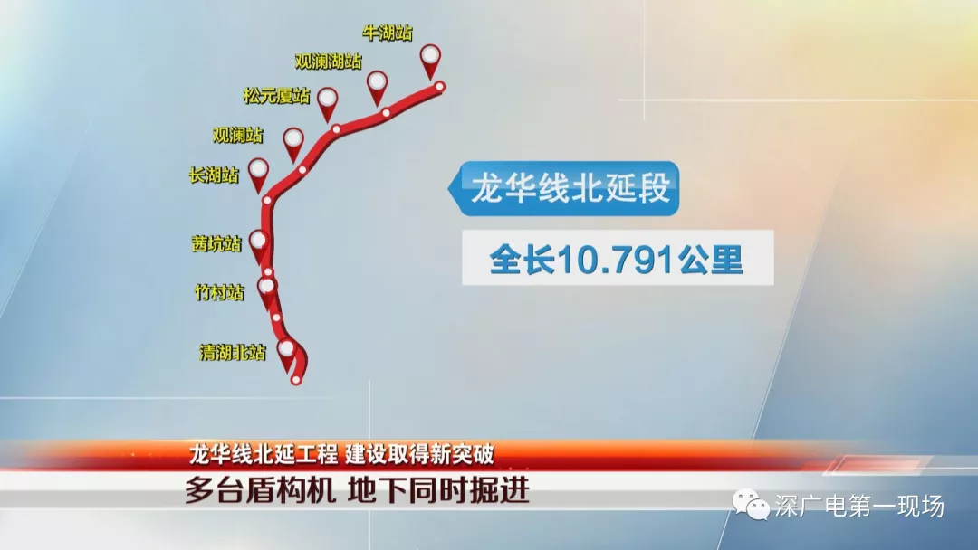 龍華線北延段工程線路,由目前龍華線終點(diǎn)站清湖站引出,由南至北依次沿和平路、觀瀾大道、高爾夫大道敷設(shè),沿途設(shè)有清湖北站、竹村站、茜坑站、觀瀾湖站、牛湖站等共8個車站,全長10.7公里,目前其他車站和區(qū)間的建設(shè)也在加緊推進(jìn)。