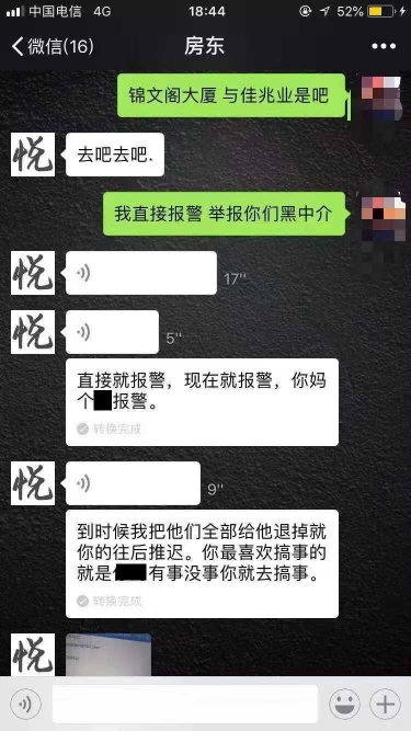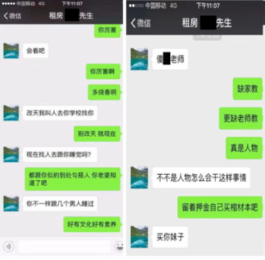 追索押金的過程并不平靜。10月13號的一次微信溝通中,余某亮對李小姐以文字和色情圖片進行人身恐嚇、辱罵和性騷擾。記者還獲悉,余某亮至少對2人女租客進行過性騷擾,也有男租客稱受到余某亮等人的人身恐嚇。