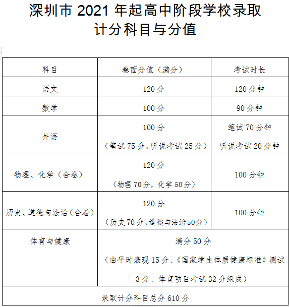 因為深圳中考總分由目前的460分調整為610分