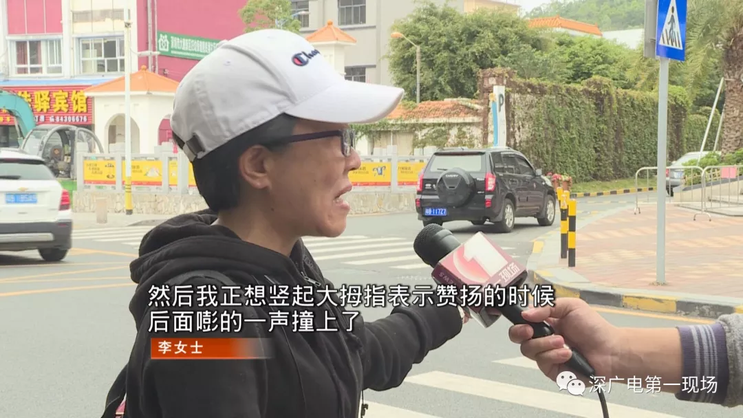 正當(dāng);李女士要贊揚(yáng)他時(shí),這輛小汽車被后面的電動車追尾了