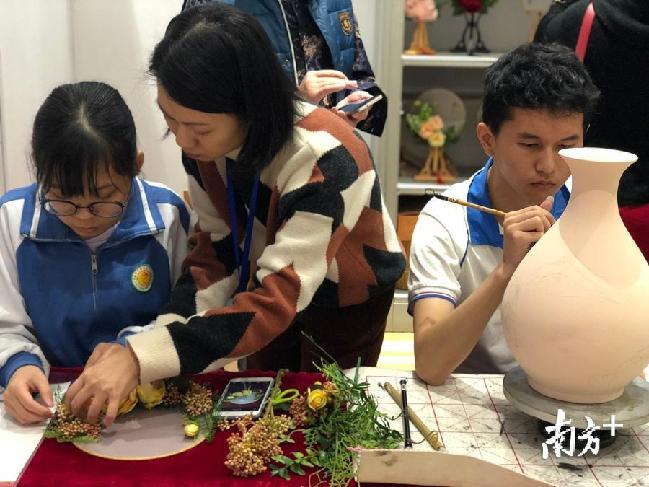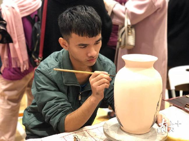 在本地文創(chuàng)館中,梅州市8個縣(市、區(qū))文創(chuàng)專區(qū)的展品吸引著現場觀眾的眼球,陶瓷、竹雕、木雕、葉畫、花燈、臉譜等代表性文創(chuàng)產品充分展示了地域文化特色。臺灣館、動漫館等一些特色展館則以新奇和有趣的文創(chuàng)創(chuàng)意產品吸引了不少市民圍觀。