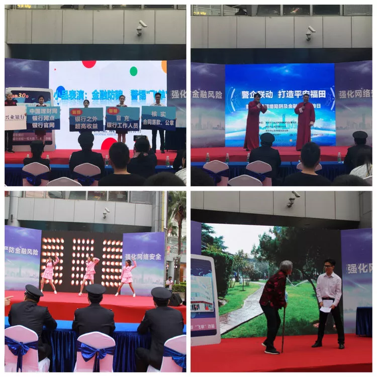 節(jié)目內(nèi)容豐富多彩。現(xiàn)場通過"假冒公檢法詐騙風(fēng)波"、"金融防騙、警惕'飛單’"、"網(wǎng)絡(luò)安全相聲表演"等小品、情景劇、歌舞、魔術(shù)等精彩節(jié)目,精彩的節(jié)目結(jié)合著反詐騙常識,讓群眾輕松又深刻地了解常見的網(wǎng)絡(luò)詐騙手段及金融風(fēng)險(xiǎn)。