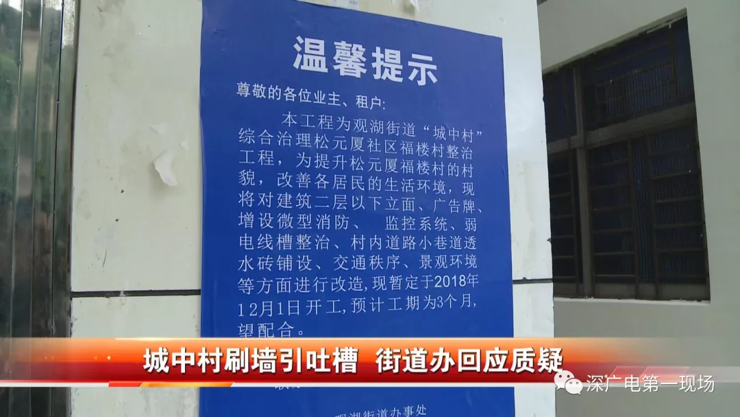福樓村的城中村改造,并不只是外墻粉刷三米高那么簡單,它僅僅只是城中村改造中的一個(gè)小項(xiàng)。據(jù)觀湖城管科辦事人員介紹,這是一個(gè)系統(tǒng)性的城中村美化工程,總共有十大項(xiàng)都需要搞。這位觀湖街道辦城管科的具體辦事人員說,對(duì)城中村如何改造,他們通過實(shí)地察看,再設(shè)計(jì)施工方案,然后進(jìn)行工程招標(biāo),征求過居民代表的意見及建議。