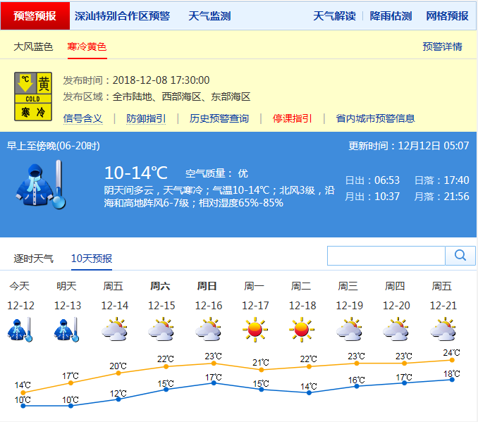 市氣象局發(fā)布未來十天天氣預(yù)報(bào)(數(shù)據(jù)更新于12月12日5時(shí)7分)