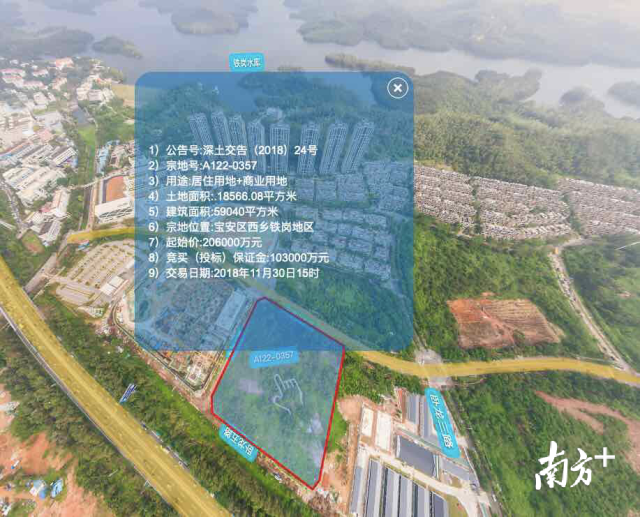 記者查閱發(fā)現,該宗地塊周邊有別墅群、高層樓盤及待開發(fā)的居住用地,臨近鐵崗水庫,不遠處有寶安公園。