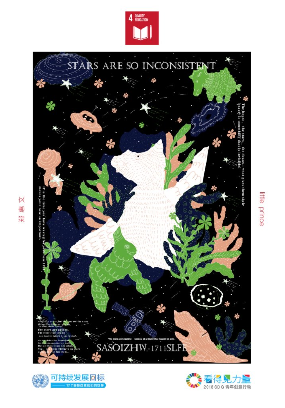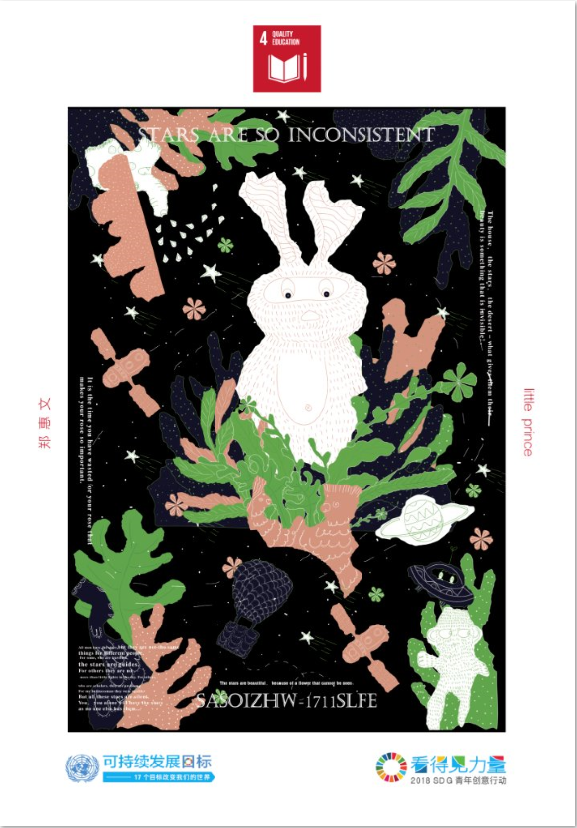 在2018年,項(xiàng)目以征集“SDG青年創(chuàng)意行動(dòng)”的方式,在近3個(gè)多月的征集時(shí)間里,共收到了來自5個(gè)國家和地區(qū)的79所大學(xué)的師生以及32家機(jī)構(gòu)/獨(dú)立設(shè)計(jì)師參與投稿的1062件(套)作品,作品類型也不再只是平面設(shè)計(jì),包括數(shù)字新媒體、建筑設(shè)計(jì)以及品牌策劃、交互設(shè)計(jì)軟件、網(wǎng)站搭建等多種表現(xiàn)形式的作品均。經(jīng)知名設(shè)計(jì)師張達(dá)利、黑一烊、宋博淵、鄧遠(yuǎn)健和社會(huì)創(chuàng)新專家馮曉近10個(gè)小時(shí)的三輪現(xiàn)場(chǎng)評(píng)審,共有1件(套)作品獲得“特別大獎(jiǎng)”,10件(套)作品獲得“最佳獎(jiǎng)”,101件(套)作品獲得“優(yōu)異獎(jiǎng)”。在評(píng)選和公示期之后,獲獎(jiǎng)名單已于12月初正式發(fā)布,系列活動(dòng)創(chuàng)意與可持續(xù)發(fā)展論壇和面向全球招募的獲獎(jiǎng)作品聯(lián)合策展計(jì)劃也即將開啟。