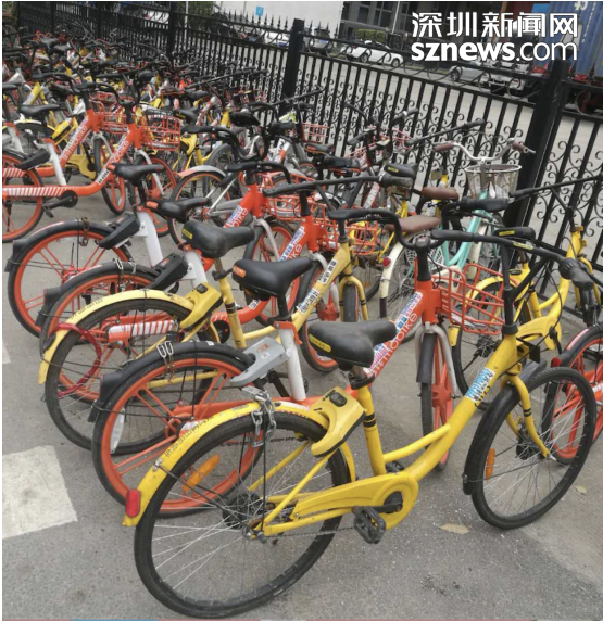 福田保稅區(qū)內(nèi)大量共享單車被上私鎖