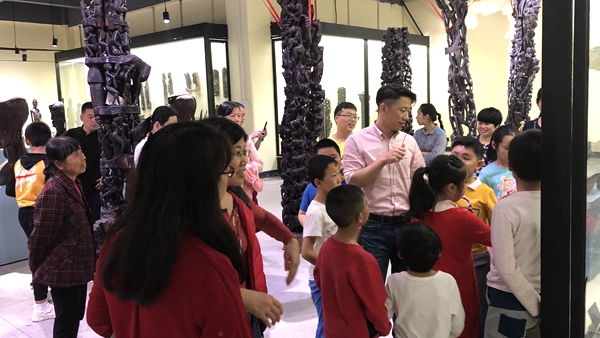 也許是被熱情的笑容和鼓舞所感染,天真活潑的小朋友們一到現(xiàn)場便與非洲大哥哥大姐姐們迅速的打成一片,毫無距離感。在非洲哥哥姐姐們的鼓聲引領(lǐng)下,同學(xué)們首先來到非洲文化博物館,由于大家都是第一次接觸非洲藝術(shù)品,哇哇哇的贊嘆聲此起彼伏,博物館工作人員瞬間被大家緊緊包圍,對各種藝術(shù)品提出了無數(shù)個五花八門的問題,真正成了“十萬個為什么”“案發(fā)現(xiàn)場”。“馬賽人為什么住牛糞房子???”“木頭為什么是黑色的啊”“坐了酋長椅是不是就可以做酋長了?”……由于同學(xué)們第一次這么近距離接觸非洲文化,實在是太好奇太熱情,與各種藝術(shù)品親密接觸拍照、坐酋長椅體驗“做酋長”的感覺、甚至工作人員也“網(wǎng)開一面”讓大家騎在大象和獅子木雕上盡情玩耍,導(dǎo)致原本計劃半小時的參觀時間足足一個半小時才結(jié)束。