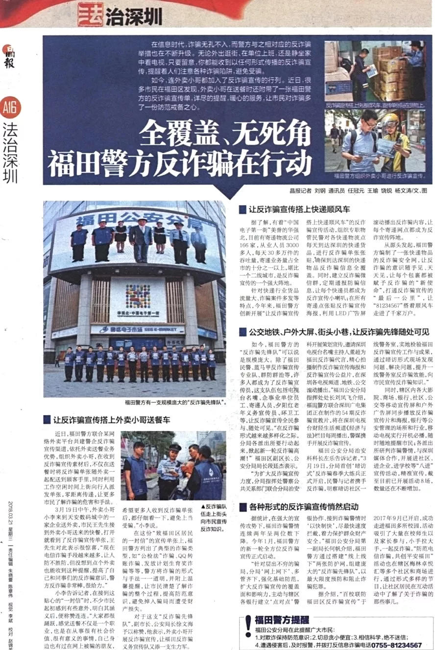 ★★福田警方通過搭建“線上線下”兩張防護網(wǎng),組建龐大的“反詐騙先鋒隊”,多管齊下,擴大反詐騙宣傳的覆蓋面和影響力,最大限度預(yù)防和阻止詐騙犯罪。