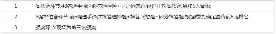 你熟悉改革開放的相關(guān)知識(shí)嗎? 你了解深圳這個(gè)改革開放窗口城市嗎? 你關(guān)注深圳特區(qū)的發(fā)展歷程嗎? 你知道深圳各大地標(biāo)嗎? …… 只要你有興趣 歡迎報(bào)名參加我們將選取 活動(dòng)現(xiàn)場還有驚喜大禮等你哦大家千萬別錯(cuò)過喲! 第一名將獲得華為P20手機(jī)一部 圖片來源:華為官方旗艦店 前6強(qiáng)選手將獲得豐厚獎(jiǎng)品哦! 競賽流程 競賽規(guī)則 淘汰賽獎(jiǎng)勵(lì)和規(guī)則 【獎(jiǎng)勵(lì)】本次知識(shí)競賽共有七輪淘汰賽,將從48名參賽選手中,選出6位選手晉級排位賽。48名參選選手均將獲得手繪深圳景色明信片,6強(qiáng)選手都將獲得獎(jiǎng)品。 【規(guī)則】淘汰賽中,所有選手都兩兩PK答題,號碼牌數(shù)字由選手自己盲選,號碼牌接近的兩人自動(dòng)互為PK對手(1號牌 PK2號牌、3號牌 PK4號牌……依次對應(yīng)PK)。題目皆為選擇題,答案有A、B、C三個(gè),選手要從中選出正確答案。誰答對的多誰贏,同分再搶答一題定勝負(fù),輸?shù)囊环阶詣?dòng)淘汰。 排位賽規(guī)則 【總規(guī)則】所有選手都將分到一個(gè)搶答器,初始得分都為100分,比賽過程中選手們進(jìn)行搶答,答對得20分,答錯(cuò)扣10分,提前搶答扣10分,每題答題時(shí)間10秒,答題超時(shí)扣10分。 排位賽共有20道搶答題,其中10題為選擇題,10題為聯(lián)想題: 【選擇題規(guī)則】選擇題答案有A、B、C三個(gè),選手要從中選出正確答案,參賽選手必須在主持人喊出“開始”后,才可搶答,提前搶答扣分; 【聯(lián)想題規(guī)則】聯(lián)想題的每一道題的答案都是一個(gè)專有名詞,每道題目主持人會(huì)用較慢速描述該名詞開始,選手從主持人的描述中獲取線索,猜出答案,選手可隨時(shí)搶答。答對一題得20分,答錯(cuò)扣10分。 了解清楚比賽流程和規(guī)則之后, 是不是想趕緊報(bào)名呢? 那么,具體如何參與呢? 報(bào)名方式 1、掃描下方二維碼進(jìn)入原文留言,回復(fù)“報(bào)名+姓名+電話”; 2、回復(fù)截止時(shí)間至2019年1月3日。如若報(bào)名成功,將會(huì)收到我們的回復(fù)通知; 3、本次活動(dòng)免費(fèi)報(bào)名,活動(dòng)解釋權(quán)歸深圳發(fā)布廳所有。 期待你的參與! 快快報(bào)名吧! 內(nèi)容來源:深圳發(fā)布 如需轉(zhuǎn)載,請注明以上內(nèi)容
