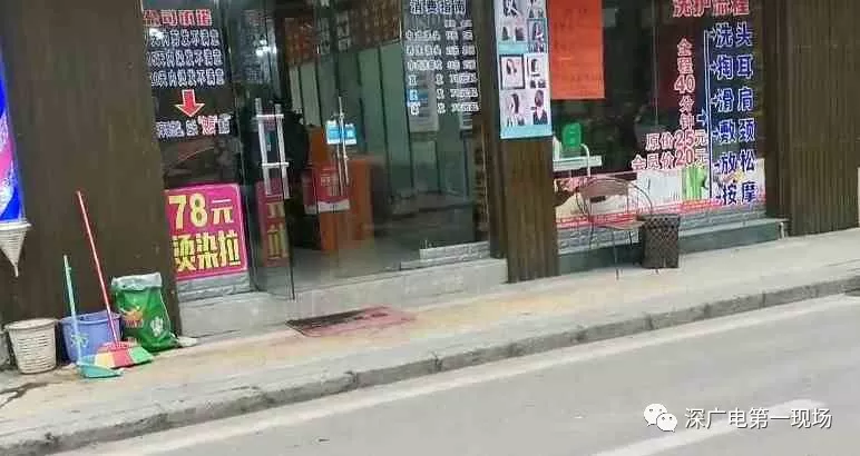 今天記者在現(xiàn)場看到,理發(fā)店門前地上留有被咬女子的血跡,祠堂門口地上及周邊路墩,都有狗被打后留下的血跡。