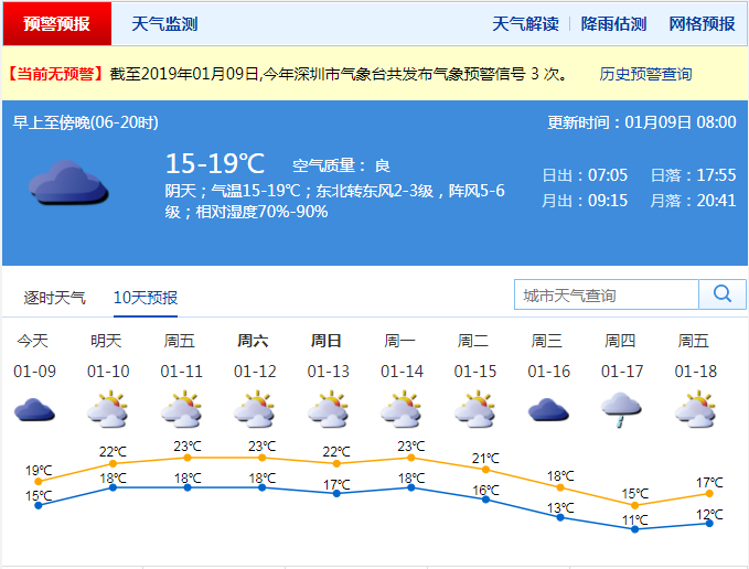 深圳新聞網(wǎng)2019年1月9日訊(記者 陳婕)先帶來兩個(gè)好消息,首先是本周末陰沉天氣好轉(zhuǎn),有明顯陽光,適宜出行游玩浪起來!第二個(gè)好消息就是春節(jié)期間(2月4日-2月10日),無強(qiáng)冷空氣影響深圳市。假期前期溫暖舒適,后期弱冷空氣影響,氣溫略降,最低氣溫12-13℃。目前大片云層覆蓋了我國華南地區(qū),深圳市天氣陰沉,缺少陽光,明后天還是持續(xù)陰天,有分散小雨,衣服曬不干。