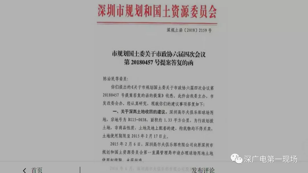 深圳高爾夫俱樂部球場用地的所有權(quán)問題,一直備受關(guān)注。曾有委員提出提案,將高爾夫球場收回作為公共公園,這一提案在2018年也得到過市規(guī)劃國土委的回復(fù)。