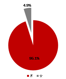 截至2018年12月31日,駕培行業(yè)教練員以男性為主,其中,男性教練員有6065人,占整體教練員的95.1%,女性教練員有315人,占比4.9%。