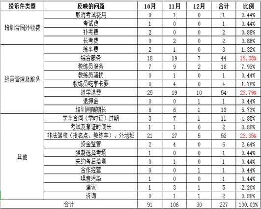2018年第四季度投訴類(lèi)別統(tǒng)計(jì)一覽表