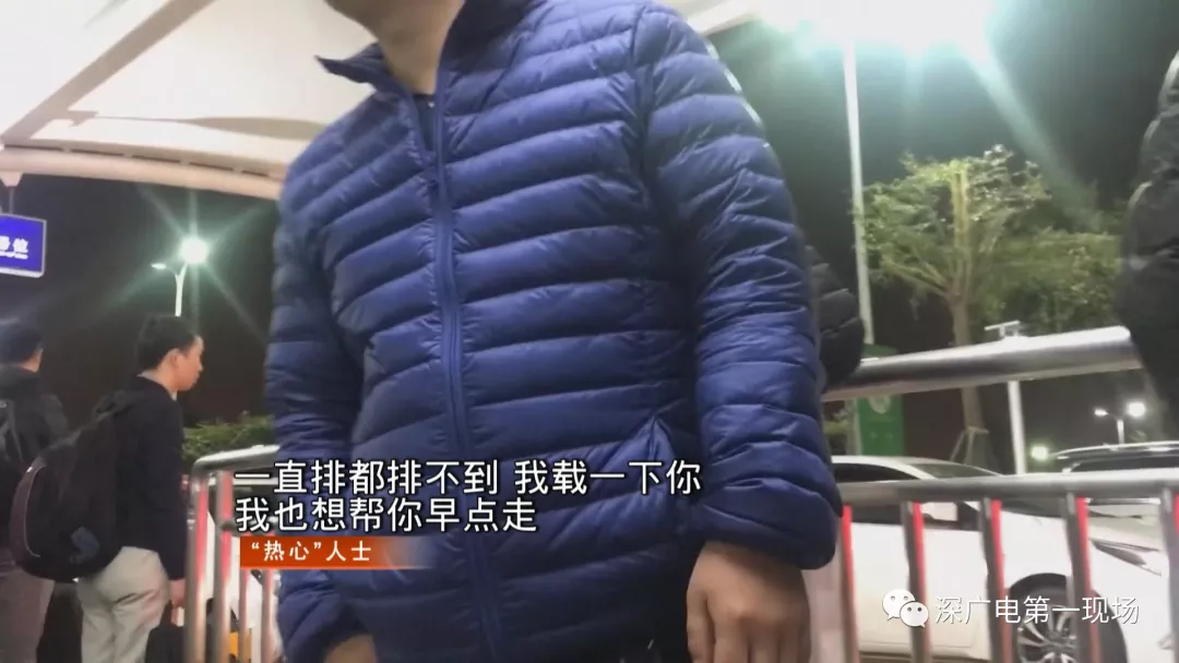 網約車通道內,這些“熱心人士”的數(shù)量也不少——通向網約車通道的人行道,網約車通道等候的人群中,到處都有他們的身影,在他們看來,自己是在向初到深圳的旅客提供熱情周到的服務。