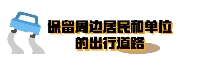 雖然周邊主干道全部被封閉了,但是考慮到附近居民和單位的出行問題,周邊仍保留了部分輔道并設(shè)置疏解路。