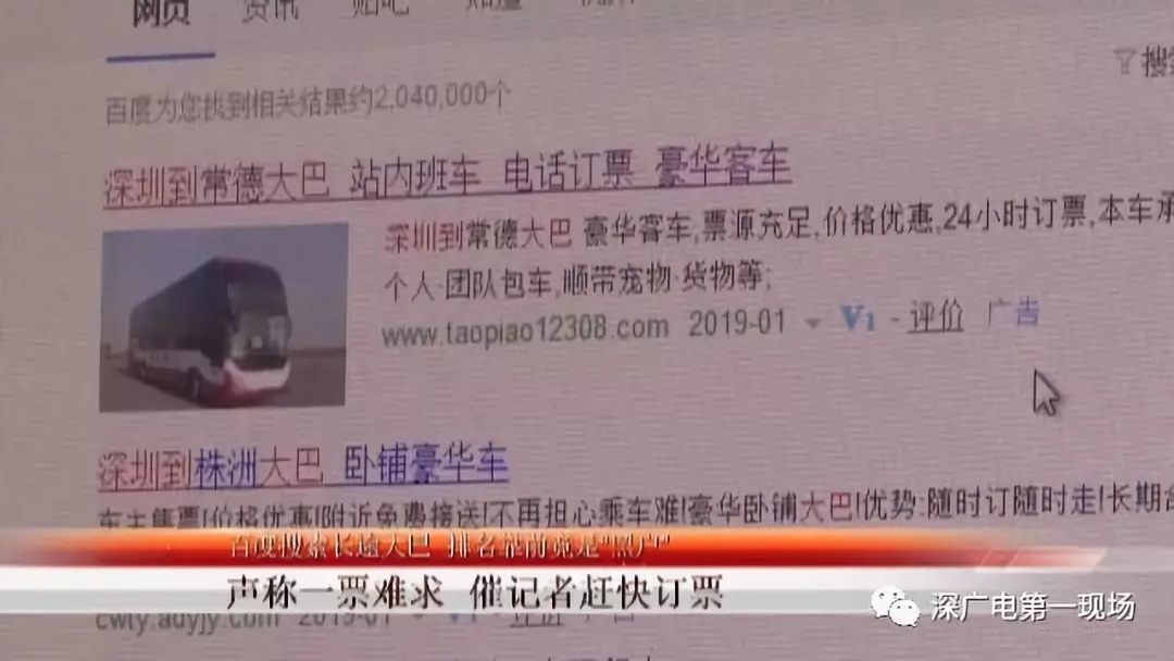 記者首先通過(guò)網(wǎng)絡(luò)搜索從深圳到湖南的大巴車(chē),發(fā)現(xiàn)排在前面幾位的全部都是帶有廣告標(biāo)識(shí)的網(wǎng)頁(yè),進(jìn)入網(wǎng)頁(yè)以后發(fā)現(xiàn),上面除了簡(jiǎn)單的宣傳文字和聯(lián)系電話(huà)以后,沒(méi)有任何其他的東西。記者嘗試撥打網(wǎng)頁(yè)上的聯(lián)系電話(huà),對(duì)方表示不可以在網(wǎng)上購(gòu)票,而是跟昨天查處的非法營(yíng)運(yùn)大巴一樣,必須到他們指定的地方乘車(chē)。