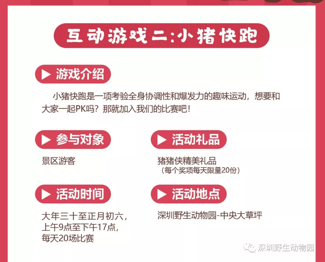 豬年新春新亮點:豬年新生命,新伙伴隆重加入動物王國,點綴出新春最閃耀的色彩;別出心裁豬年豬科普展,帶你挖掘豬豬的“前世今生”;美不勝收深圳本土生物多樣性科普攝影展,換個角度了解我們身邊的動物朋友。