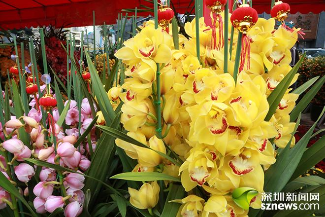 記者看到,花市現(xiàn)場(chǎng)各類(lèi)鮮花嬌艷欲滴,有吉祥如意的年桔、大富大貴的黃金果、花姿優(yōu)美的蝴蝶蘭、嬌艷欲滴的郁金香等。各類(lèi)年貨商品琳瑯滿目,金魚(yú)、長(zhǎng)壽龜也為花市增添了不少生氣。不少市民帶著家人朋友一起逛花市,精心挑選年花年桔和春聯(lián)年貨。