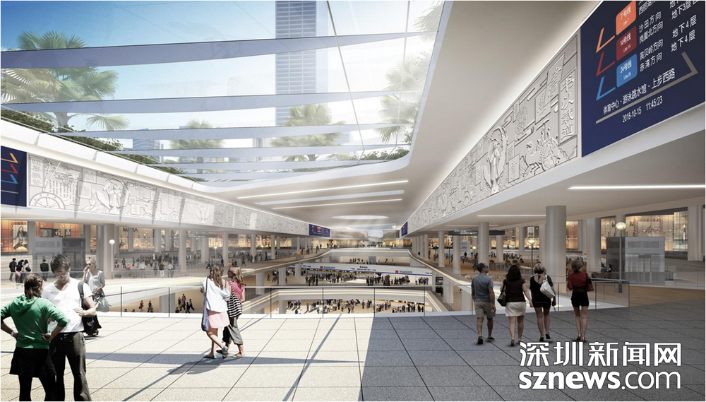 在此過(guò)程中,項(xiàng)目結(jié)合城市更新,以軌道交通為核心,通過(guò)5個(gè)軸帶有效連接體育中心、市二醫(yī)院、華富村、華強(qiáng)北商業(yè)街、筆架山公園、中心公園等多個(gè)城市區(qū)域,形成集多種功能為一體的綜合型城市地下空間新典范。