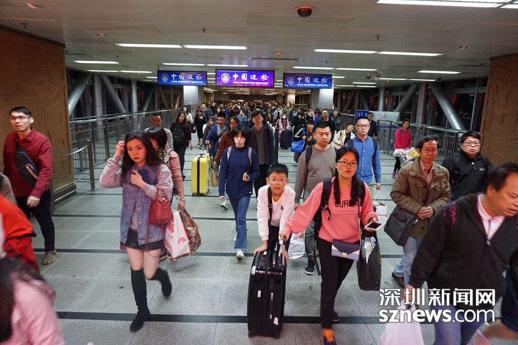 羅湖口岸2月2日下午迎來入境客流高峰,截止到當晚20時,客流量21.6萬人次(通訊員 何潔其攝)