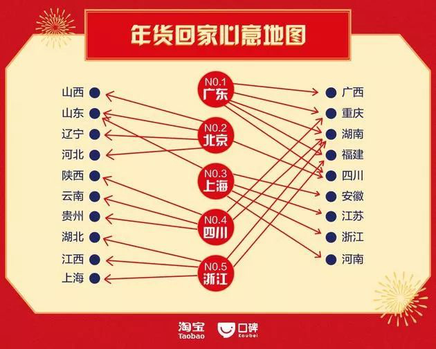 數(shù)據(jù)顯示,上海人在這一時(shí)間熱衷購買鮑魚、帝王蟹、大閘蟹作為年夜飯;而四川人則喜愛囤臘腸、魚類產(chǎn)品作年貨。而廣東人過年必點(diǎn)必吃盆菜,這道菜品在淘寶上銷量高漲不斷,十分受人追捧與喜愛。