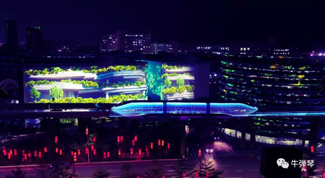 深圳分會場上演的一場炫酷光影秀,比亞迪云軌、云巴穿梭其中