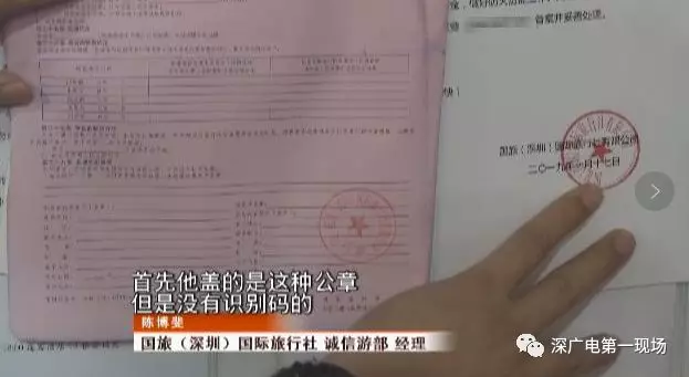李女士是通過上網(wǎng)百度搜索,找了這家自稱深圳“國旅”的野馬旅行社,并且,在與李女士等46人簽定的合同和收據(jù)落款處,都蓋有清晰的深圳市國旅印章。8號上午,李女士拿到了證件,沒等購物開始,就簽字先行離團轉(zhuǎn)至現(xiàn)在的酒店安頓,同時打電話發(fā)微信向深圳的朋友求助。人大代表楊勤關(guān)注到此事后,將情況轉(zhuǎn)告了深圳市消費者委員會。消委會透露,經(jīng)與深圳國旅確認(rèn),北方大廈7樓無他們的營業(yè)網(wǎng)點,“珊珊”等也并非國旅員工。