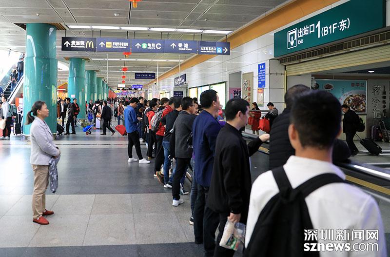 2月13日上午11點(diǎn)左右,深圳火車(chē)站內(nèi)人流密集,不少接親友的市民聚集在東出站口前
