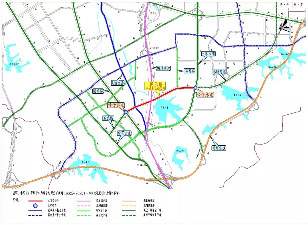 民樂路市政工程,位于深圳市中部綜合組團(tuán)境內(nèi)的民治街道及坂田街道,道路呈東西走向,西起梅龍路,向東跨梅觀高速后由現(xiàn)狀民治水庫北側(cè)經(jīng)過,終點(diǎn)至五和大道。