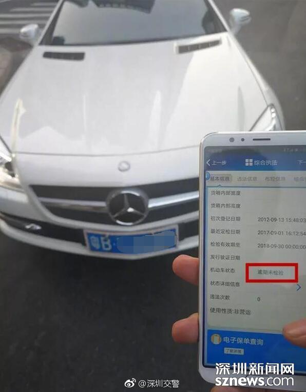 經(jīng)調(diào)查,涉事車輛逾期未檢驗(yàn)(圖片來自深圳交警微博)