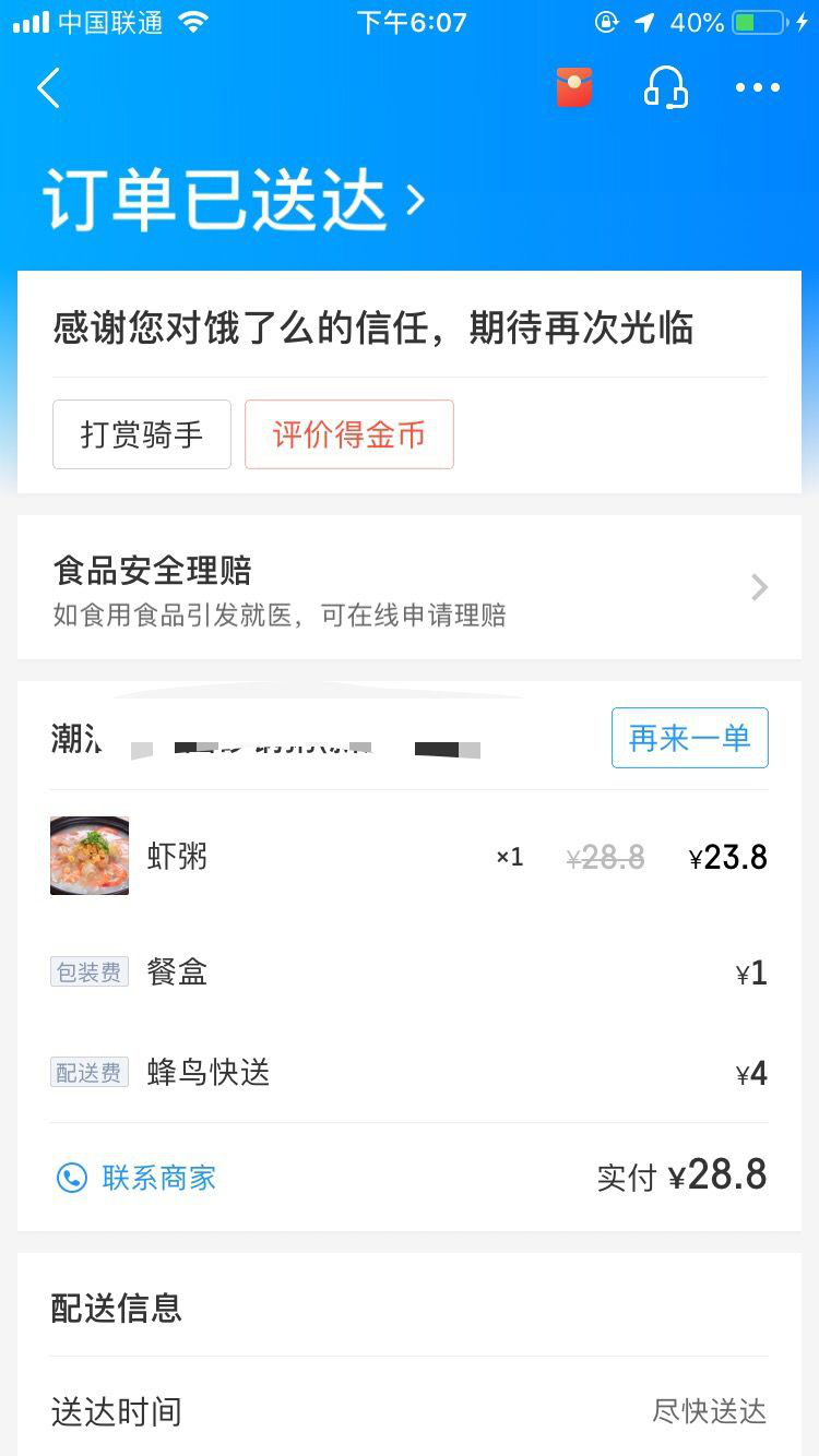 2月12日上午10點(diǎn)多,市民黃先生在餓了么外賣平臺點(diǎn)了一份潮汕砂鍋粥。2個(gè)小時(shí)后,肚子快餓癟的黃先生等到了外賣小哥的電話。外賣小哥告訴他,外賣在電動車上被偷了,對此很抱歉,麻煩黃先生重新點(diǎn)餐,并希望添加他的微信進(jìn)行賠償。