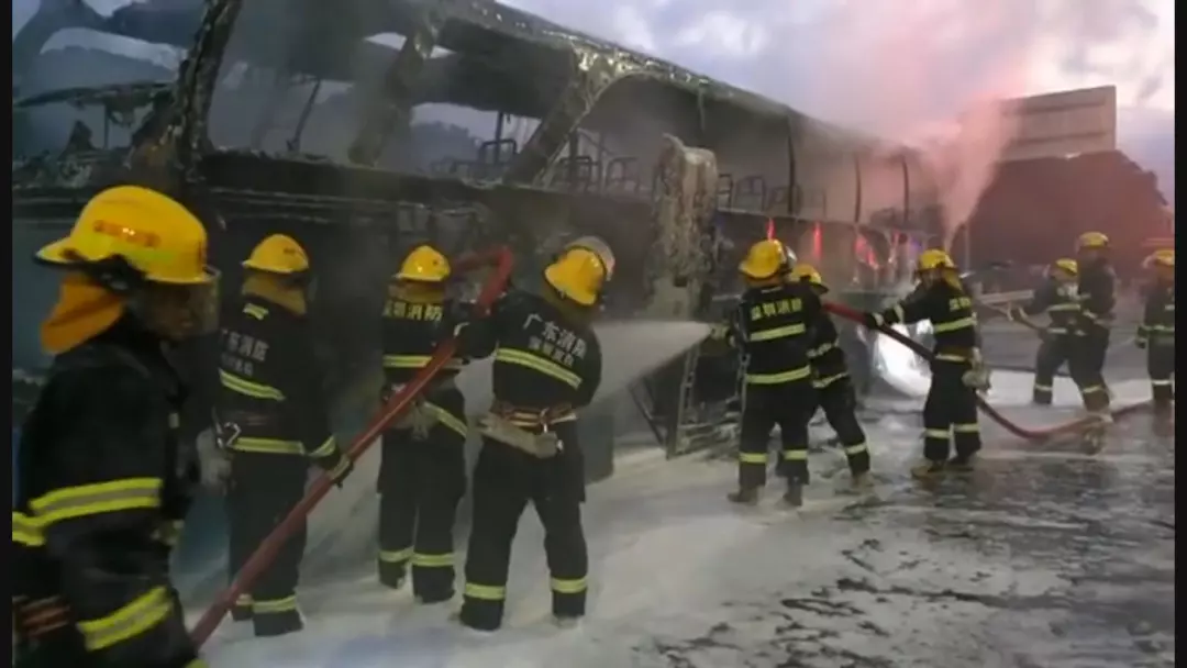 通過(guò)泡沫滅火劑覆蓋的方式,火勢(shì)最終得到控制,但整個(gè)大巴也被燒的只剩下框架。車上的兩名司機(jī)介紹,他們從桂林發(fā)車來(lái)到深圳,因?yàn)閯倓傇诟浇囌鞠驴?,車上并無(wú)乘客。而起火原因兩人也并不清楚。