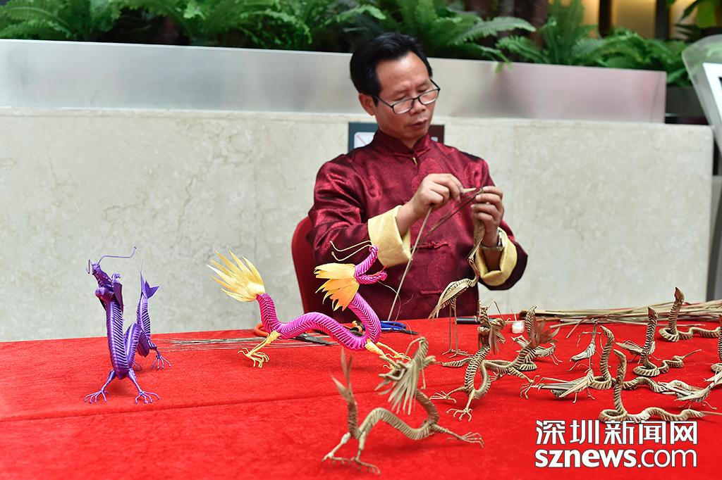 活動現(xiàn)場的草編藝人正在編織各種工藝品,草編在中國分布很廣,主要產(chǎn)區(qū)有山東、浙江、廣東、河南等地,在2008年入選第二批國家級非物質(zhì)文化遺產(chǎn)名錄。