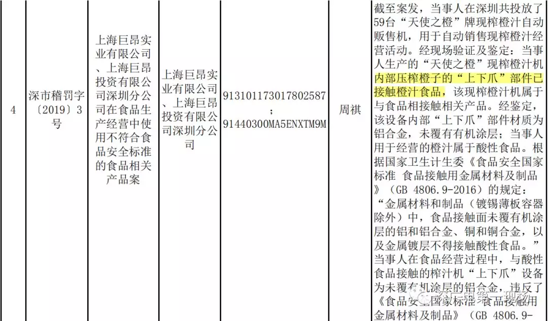 (深圳市市場稽查局公開的相關處罰信息截圖)