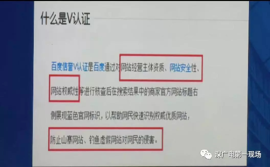 百度信譽(yù)V認(rèn)證,是百度通過(guò)對(duì)網(wǎng)站經(jīng)營(yíng)主體資質(zhì)、網(wǎng)站安全性、網(wǎng)站權(quán)威性等核查后,在搜索結(jié)果中的商家官方網(wǎng)站標(biāo)題右側(cè)展現(xiàn)藍(lán)色官網(wǎng)標(biāo)識(shí),以幫助網(wǎng)民快速識(shí)別權(quán)威優(yōu)質(zhì)網(wǎng)站,防止山寨網(wǎng)站、釣魚虛假網(wǎng)站對(duì)網(wǎng)民的侵害。