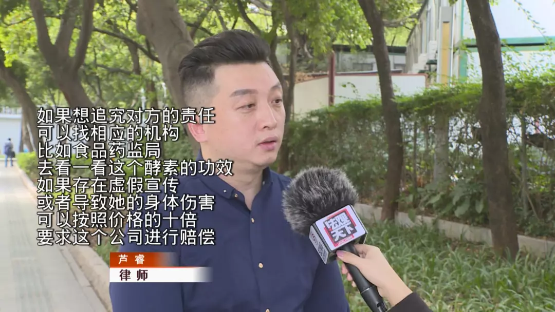 此外律師表示,如果該酵素產(chǎn)品并不存在公司所稱的排毒、養(yǎng)生等功效,則可能涉嫌虛假宣傳。如果確實(shí)是由于酵素導(dǎo)致了張女士的身體出現(xiàn)問(wèn)題,公司方還應(yīng)當(dāng)賠償誤工費(fèi)等其他費(fèi)用。