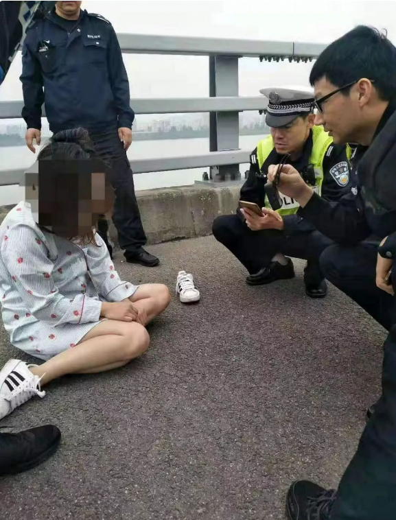 當(dāng)深圳交警趕到現(xiàn)場時(shí),見到該女子情緒異常激動疑有跳橋輕生之舉,橋下便是滔滔江水,現(xiàn)場情況十分危急。