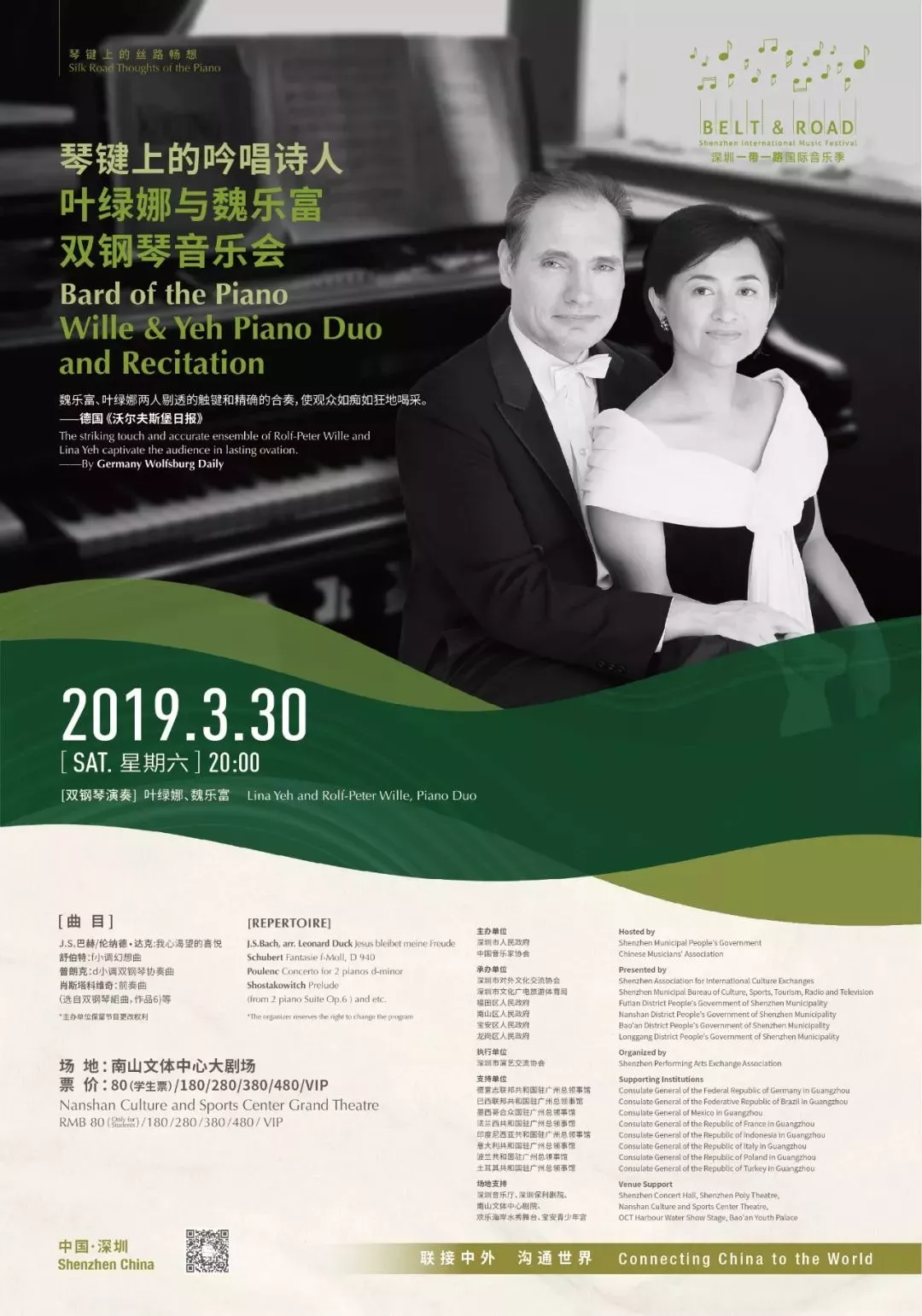魏樂富與葉綠娜,來自中國臺灣的音樂伉儷,兩人的合作從音樂到文學(xué),精彩演奏與深情吟誦展露出琴鍵上的吟唱詩人氣質(zhì)。