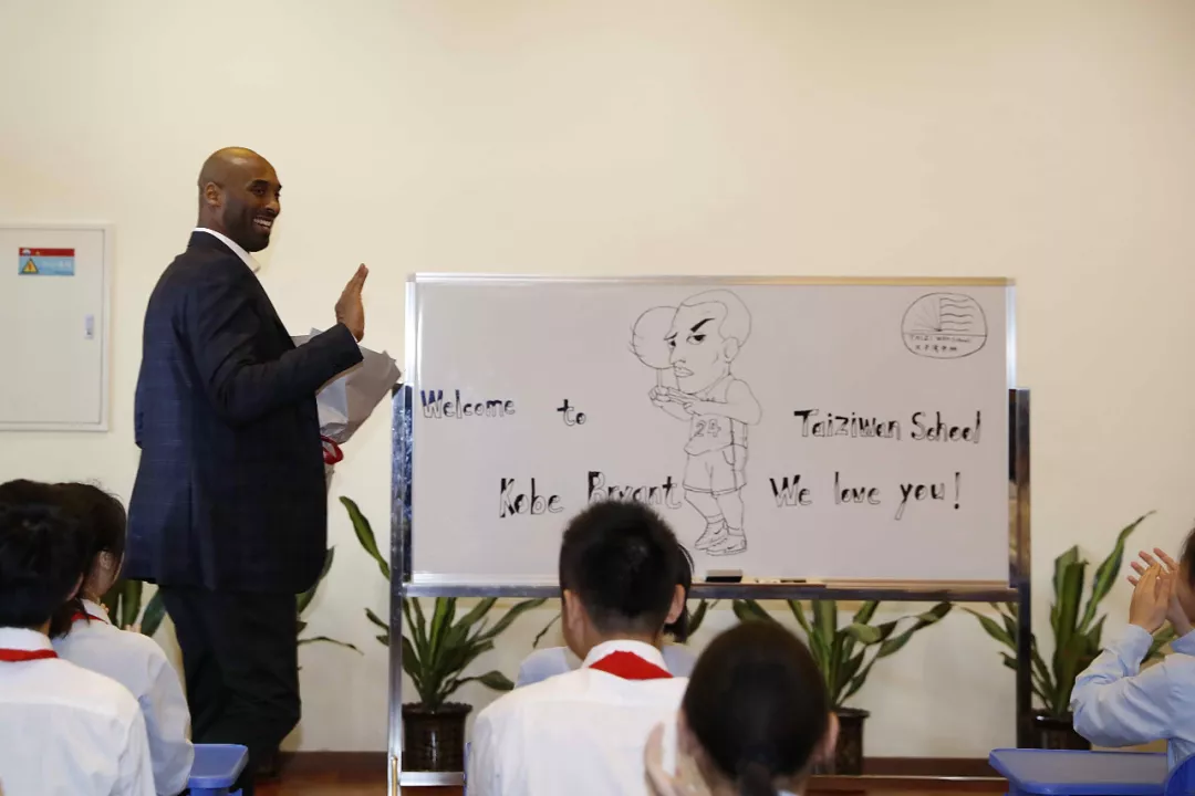 11點(diǎn)20分,科比在萬(wàn)眾期待中出現(xiàn),滿臉笑容地走下車接受太子灣學(xué)校學(xué)生的鮮花。