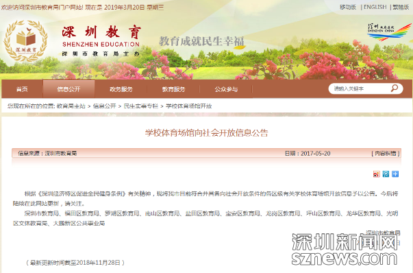深圳市教育局關(guān)于學(xué)校體育館向社會(huì)開放的信息公告