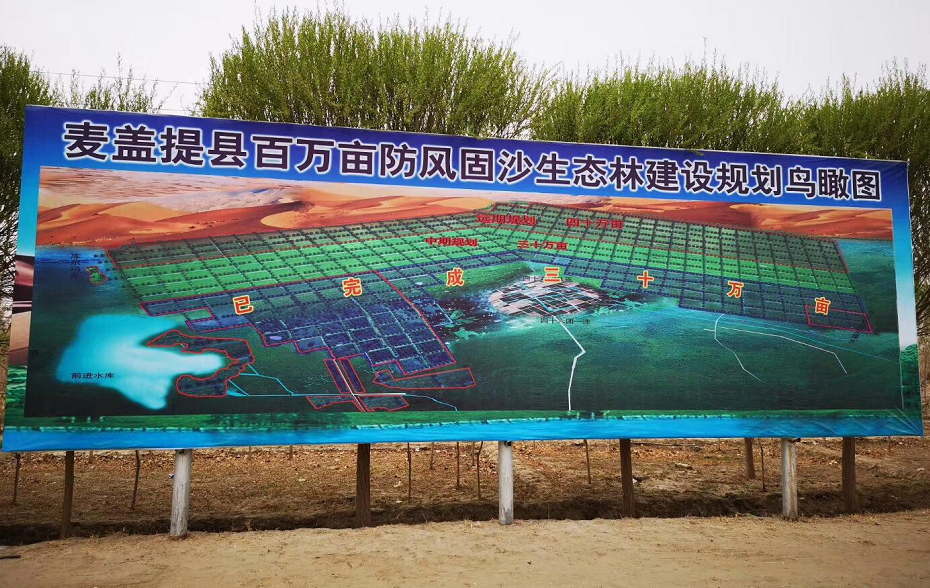 每年春秋兩季,麥蓋提縣約10萬名干部群眾都要到沙漠里植樹