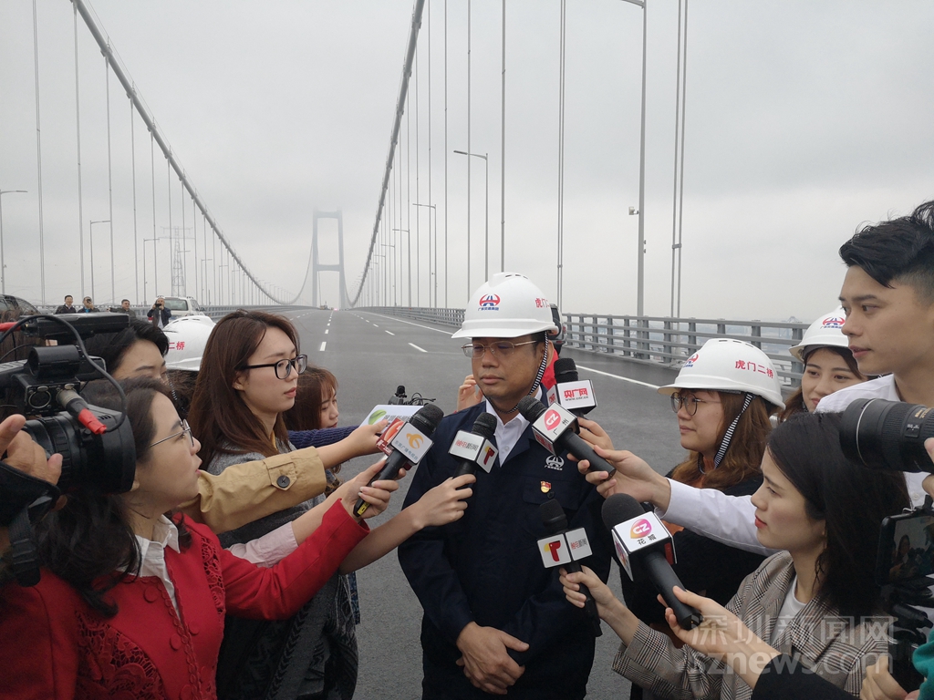 虎門(mén)二橋項(xiàng)目營(yíng)運(yùn)負(fù)責(zé)人高嚴(yán)廣(中)介紹虎門(mén)營(yíng)運(yùn)情況